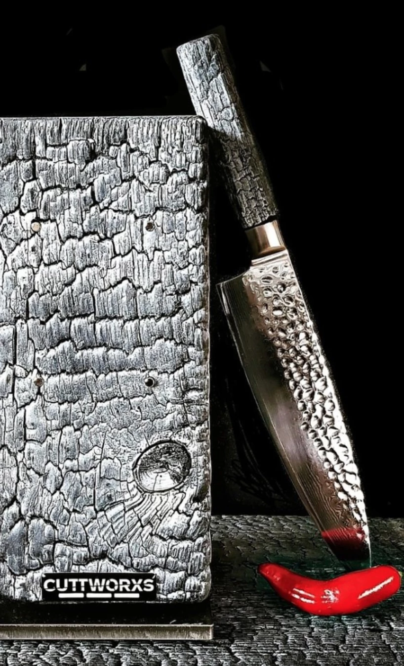 Geboren in het vuur! Cuttworxs Evolution Koksmes, vervaardigd van damast staal.