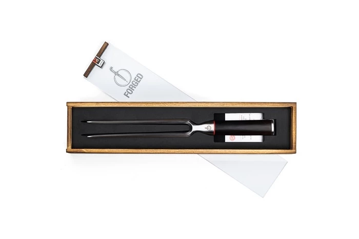 De vleesvork heeft een lemmetlengte van 20cm met twee scherpe punten en een handvat van 11 cm. Het handvat is gemaakt van smaakvol olijfhout.