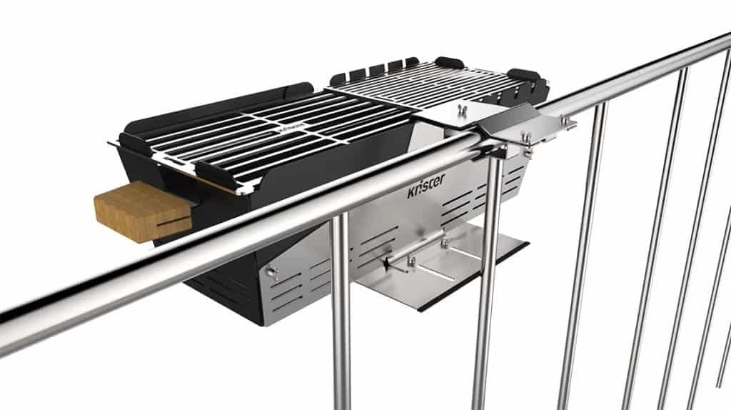 De balkonbeugel is speciaal ontworpen voor de Knister Grill om de BBQ aan een balkonleuning te bevestigen maar de beugel kan aan elke rond leuning tot 50 mm worden bevestigd. Hij kan bijvoorbeeld ook aan de leuning van een zeilboot worden bevestigd.
