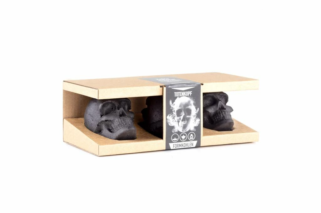 Uiteraard ook leuk om te geven als kado! In de doos zitten 3 doodskop briketten.