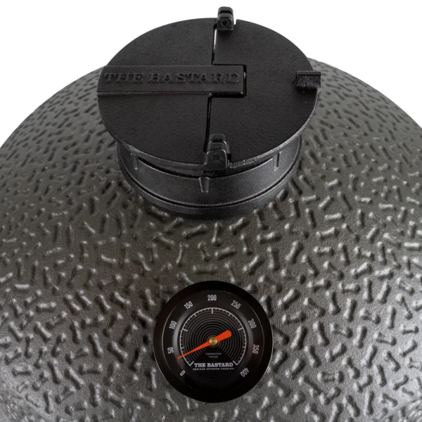Het VX model van The Bastard is op een aantal punten veranderd ten opzichte van ‘traditionele’ modellen. Dankzij de nieuwe gietijzeren topschijf is het mogelijk de temperatuur perfect te controleren. Door de deksel van de topschijf te draaien is het mogelijk de luchttoevoer te verhogen, zonder dat het bovenste gedeelte eraf gehaald hoeft te worden. Het handvat is verbeterd met gepoedercoate beugels van geperst RVS. Daarnaast is het scharniersysteem geoptimaliseerd, het hefvermogen is versterkt, waardoor de VX makkelijk open en dicht gaat. Ook beschikt het VX model over een dubbele RVS luchtschuif. De luchtschuif is met een frame gemonteerd, waardoor het keramiek van de kamado onaangetast blijft.