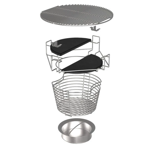 De twilight zone! Verdeel het houtskool in de kolenmand in twee zones door één kant te vullen met houtskool, leg hierover de half moon steen en rooster om zo een directe en indirecte zone te creëeren. In combinatie met de Bastard half moon accessoires zijn de mogelijkheden eindeloos.